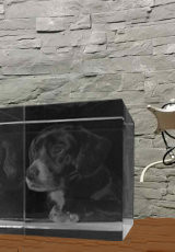 Der 3D Glaslaser kann räumliche Objekte in das Glasinnere lasern, aber natürlich auch planare Bilder und Texte. Fotos können wir nachträglich in 3D umwandeln und damit 3D Glasfotos gravieren.